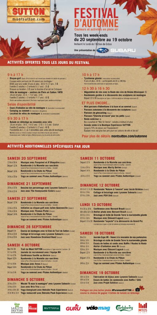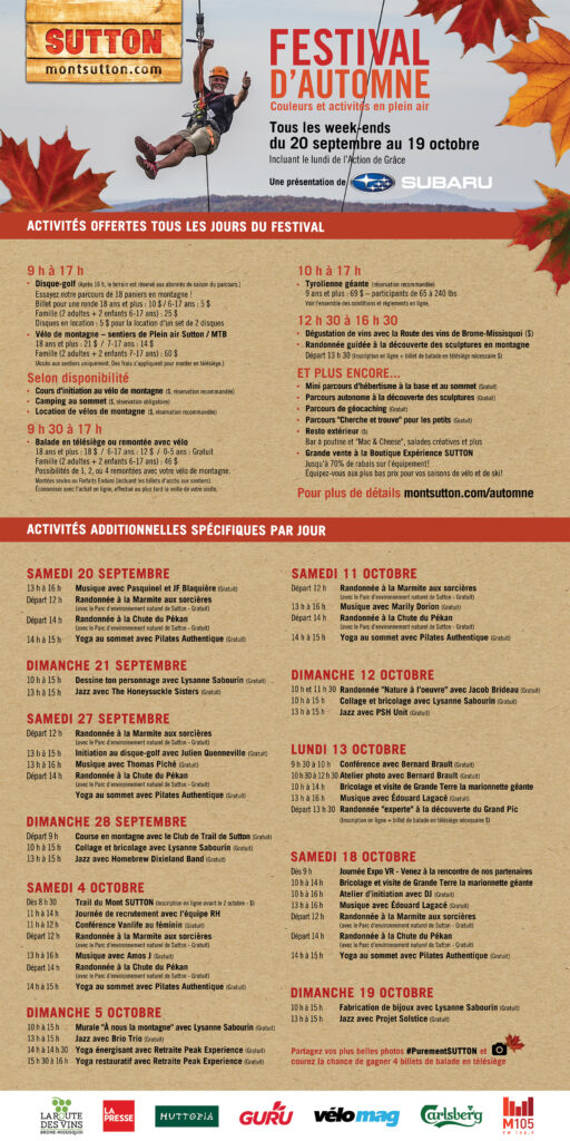 Jusqu’au 19 octobre 2025, venez profiter de la saison automnale et de toute sa beauté au Mont SUTTON !