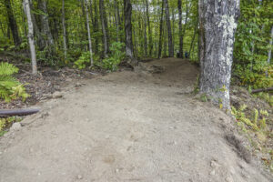 A new intermediate-level learning trail was also inaugurated at the same time! This addition was made possible thanks to the combined programs of Programme d’aide financière aux infrastructures récréatives, sportives et de plein air (PAFIRSPA), meaning Financial Assistance Program for Recreational, Sports, and Outdoor Infrastructures, from the ministère de l’Éducation and Plan Montagne from the ministère du Tourisme. This 800-meter freestyle downhill trail was built jointly by the craftsmen of Sentiers de l’Est and Wolf Bike Park. The goal was to create a trail that would allow users to learn different types of modules in a safe, controlled, and repetitive environment, enabling them to progress and acquire new skills. It features seven table tops, one step up, two drops, and one step down. The 400-meter climb leading to this new trail was built by the Plein air Sutton / MTB team.