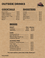 See below for the drinks menu to help you prepare for your next thirst-quenching session with family or friends… along with a menu for the outdoor bar to consult if you feel the call of our terrace fires!