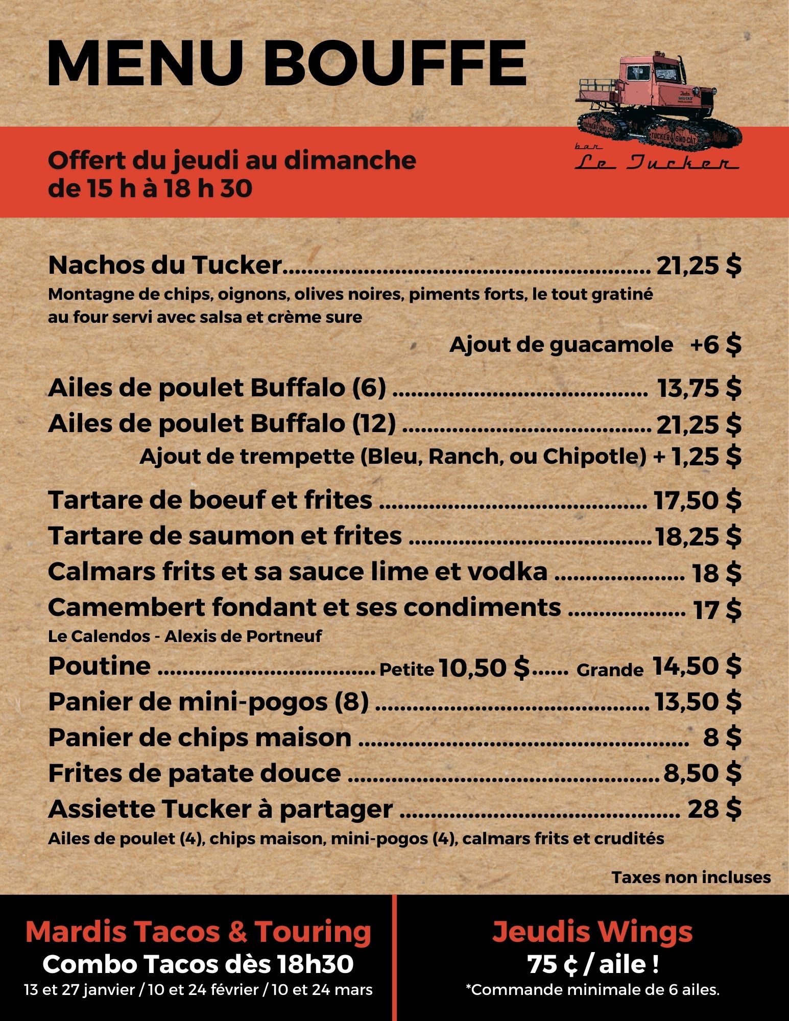 - vous régaler avec notre menu bouffe après-ski disponible du jeudi au dimanche;